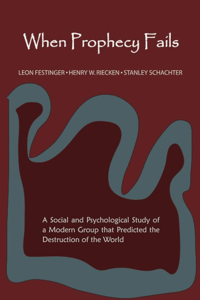 When Prophecy Fails is supposed to be a classic case study of cognitive dissonance: a UFO cult predicts an apocalypse, and when the world doesn’t end, they double down and start proselytizing even harder: “I swear the UFO is coming any minute!”