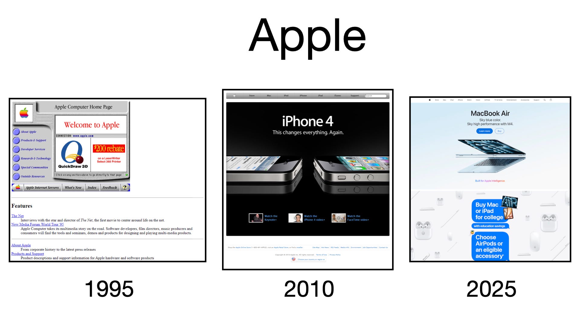 Website aesthetics changed a lot from the 90s to the 2000s and the 2010s, but haven’t changed much from the 2010s to now