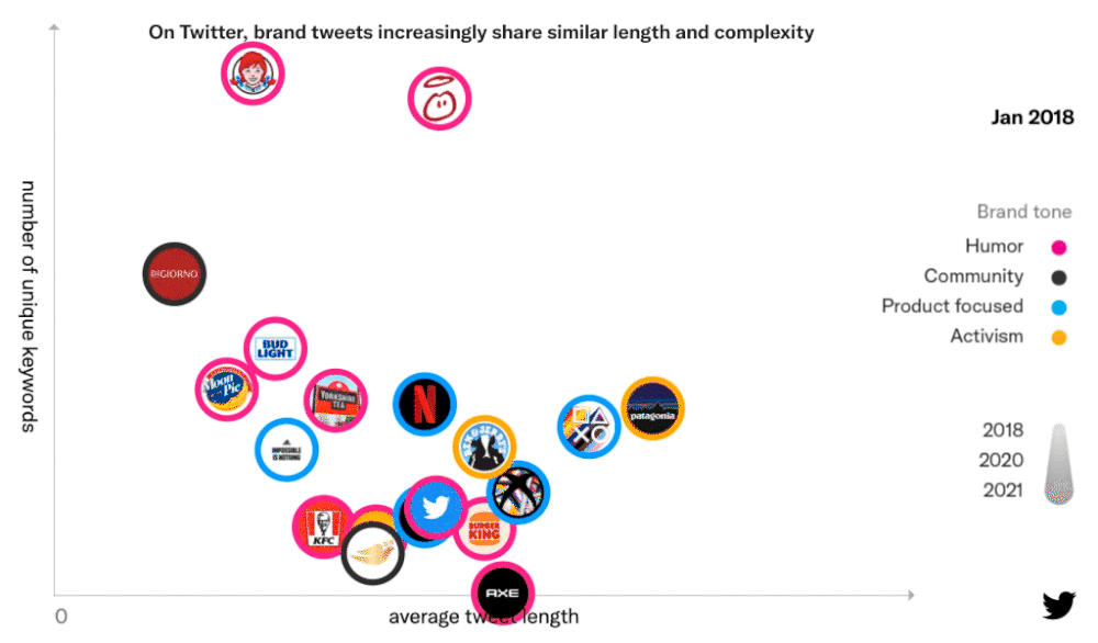An analysis of branded twitter accounts found that they increasingly sound alike:
