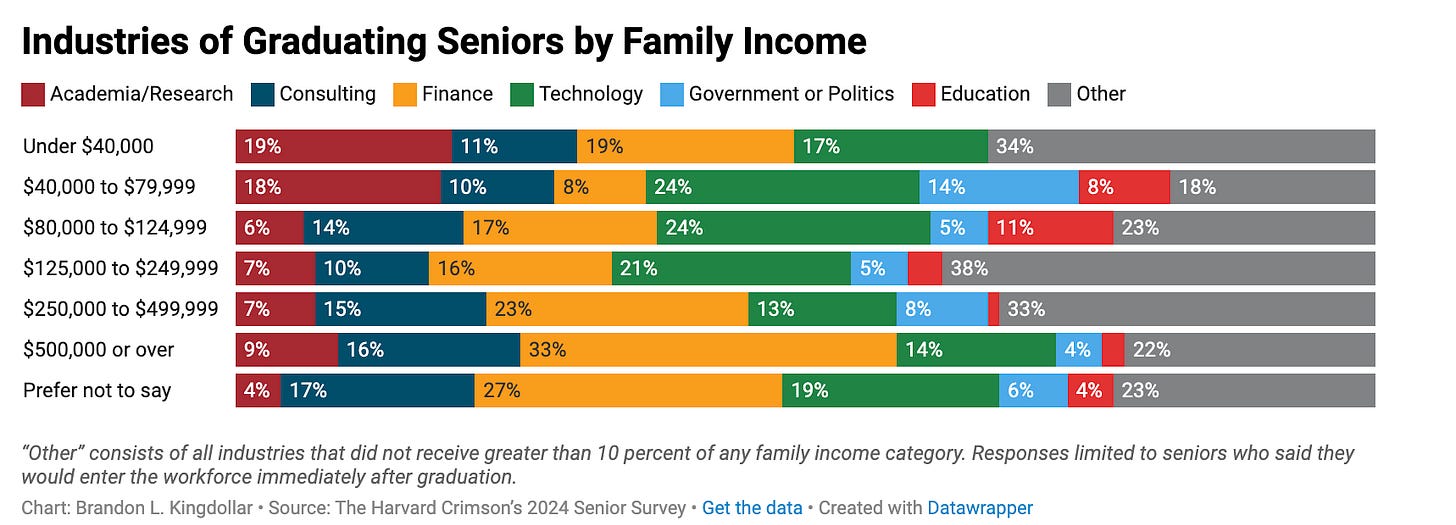 Yes, but you won’t want to. I saw this happen in real time when I was a resident advisor: getting an elite degree ought to increase a student’s options, but instead it makes them too afraid to choose all but a few of those options. Fifty percent of Harvard graduates go to work in finance, tech, and consulting. Most of them choose those careers not because they love making PowerPoints or squeezing an extra three cents of profit out of every Uber ride, but because those jobs are safe, lucrative, and prestigious—working at McKinsey means you won’t have to be embarrassed when you return for your five-year reunion. All of these kids dreamed of what they would gain by going to an Ivy League school; none of them realized it would give them something to lose.