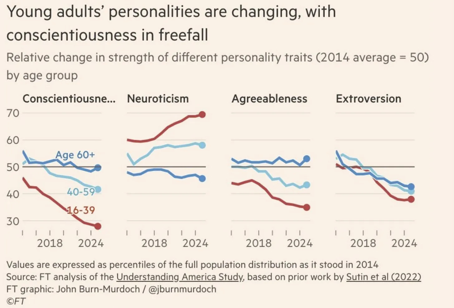 re-analyzed the data and claims the changes in conscientiousness are minimal, if they exist at all. I’m inclined to trust Ferguson’s account on this one: it’s super weird to see such huge changes in such small amounts of time on basically any psychological variables.(17) PERSONA NON GRATA