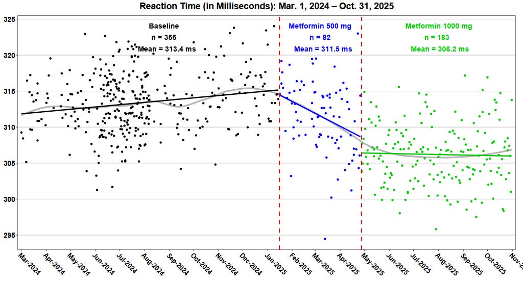 Alex Chernavsky started taking metformin and found that it didn’t do much for his blood sugar but it did, surprisingly, improve his reaction times: