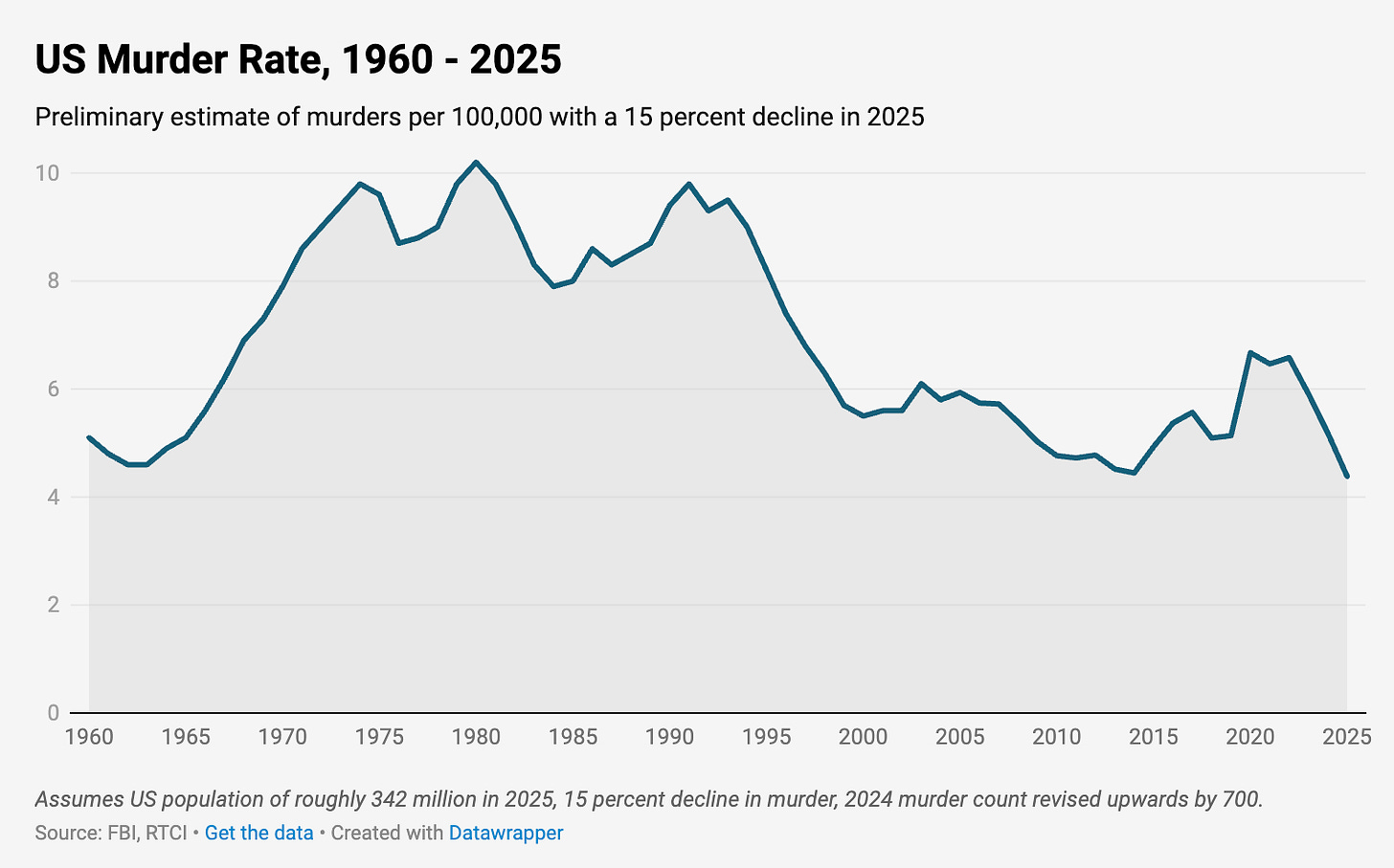 : there’s a good chance that 2025 will have the fewest murders ever recorded in the US. (We only have reliable data going back to 1960).(4) CATHETER? I HARDLY KNOW ‘ER